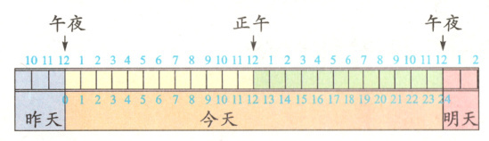 (1)从图中可以发现:从0时到中午12时,经过了12小时。
