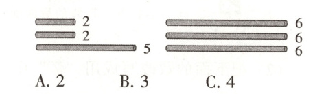(3) 用下面的小棒可以摆成 ( ) 种三角形。