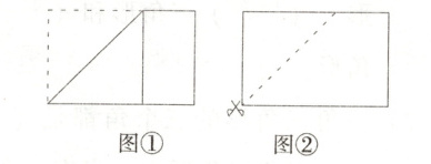 将一张长方形纸像图①一样折一折后,沿虚线 (见图②) 剪下后,剪下来的部分是一个 ( ) 三角形。