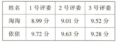 三位评委给淘淘和依依两位同学的分数各相差多少分?