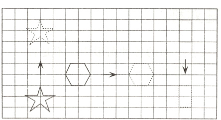 (2) 六边形向 ( ) 平移了 ( ) 格。