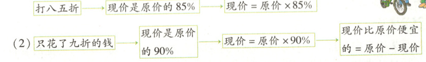 例1 (教材第8页例1)(1)爸爸给小雨买了一辆自行车,原价180元,现在商店打八五折出售。买这辆车用了多少钱?