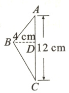 例2 如下图,把三角形ABC以AC边为轴旋转一周,得到一个图形,求这个图形的体积。($\pi$取3。)