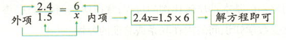 例2 (教材第42页例3)解比例$\frac{2.4}{1.5}$ = $\frac{6}{x}$。