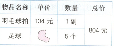 解析:总价 - 羽毛球拍的总价 = 足球的总价,足球的总价÷足球的数量 = 足球的单价。