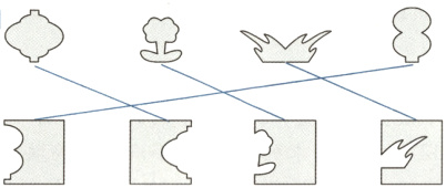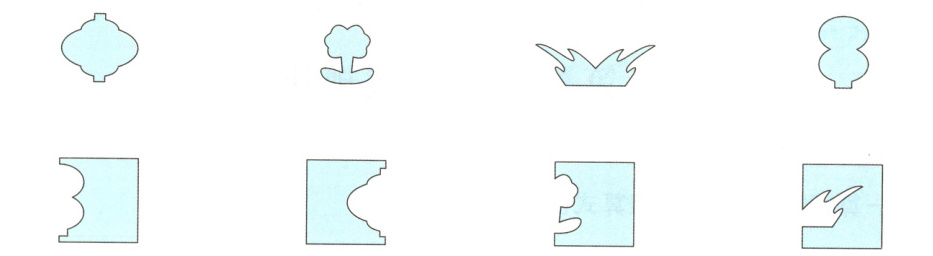 五 下面的图形分别是从哪张对折后的纸上剪下的?连一连。(12分)