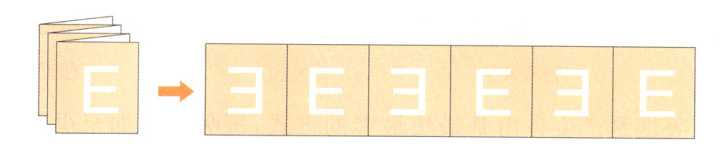 七 拿一张长纸条,将它一反一正折叠起来,并画出字母E,用小刀把画出的字母E挖去,拉开就可以得到一条以字母E为图案的花边,如图。(共16分)