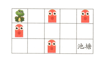 (答案不唯一)先向右走 1 格,再向下走 1 格,再向右走 3 格,最后向下走 1 格,到达池塘。