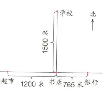 解析:根据“路程 = 速度×时间”分别求出张老师和王老师行走的路程,再求出张老师行走路程与书店到银行的距离之差及王老师行走路程与书店到学校的距离之差,即可解决问题。