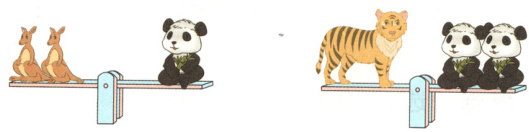 解析:2只袋鼠的质量 = 1只熊猫的质量,2只熊猫的质量 = 1只老虎的质量,所以1只老虎的质量 = 4只袋鼠的质量。