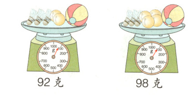 $(98 - 92)÷(4 - 2)=3$(克)