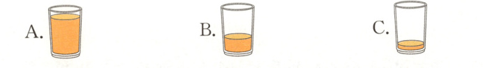 1. 一个水杯最多盛果汁600克,下面( )杯里的果汁约重200克。