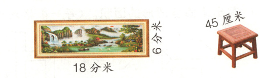 2. 计算下面长方形风景画、正方形方凳凳面的面积。