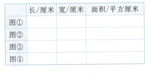 1. 下面图形中每个小方格的面积都是1平方厘米,把得到的结果写下来。