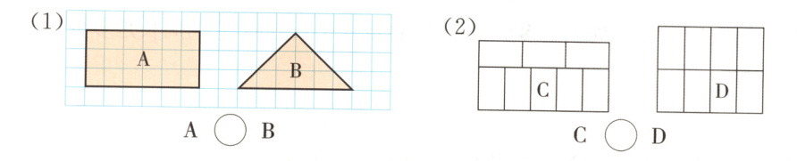 (1)> 图形A由18个正方形组成,图形B由9个正方形组成,所以A>B。