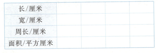 5. 用长18厘米的铁丝围成长方形,你能围出几种? 填一填,你发现了什么?