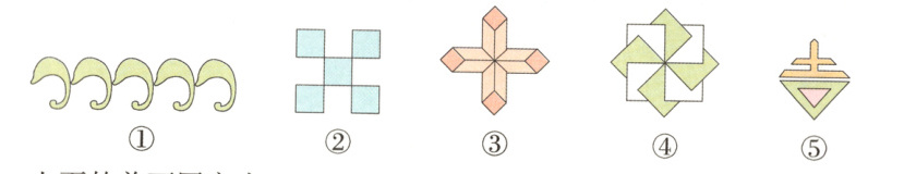 上面的美丽图案中,( )可由平移得到,( )可由旋转得到,( )是轴对称图形。