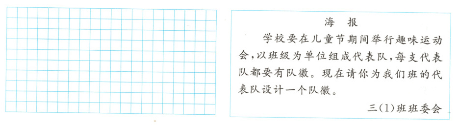 4. 按照下面的要求设计一个队徽,并画在方格里。