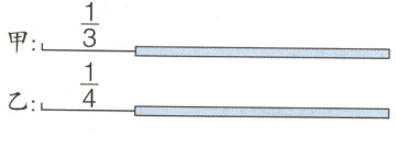 思路分析 图中甲露出部分占全长的$\frac{1}{3}$,可知甲绳应有3段这样的长度,乙露出的部分占全长的$\frac{1}{4}$,可知乙绳有4段这样的长度,所以乙绳长。这种方法是把分数问题转化为整数问题解决,简单易懂。