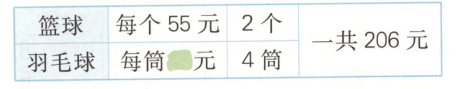 解析:篮球的单价×篮球的个数 = 篮球的总价,总价 - 篮球的总价 = 羽毛球的总价,羽毛球的总价÷羽毛球的筒数 = 每筒羽毛球的价钱。