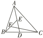 5. 如图,在△ABC中,已知点D,E,F分别是BC,AD,BE上的中点,且△ABC的面积为8 cm²,则△BCF的面积为( )。