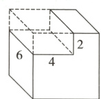 4. 如图是一个棱长是6 cm的正方体,在它的左上方截去一个长、宽、高分别为4 cm,6 cm,2 cm的长方体,这个正方体的表面积减少了( )cm²。