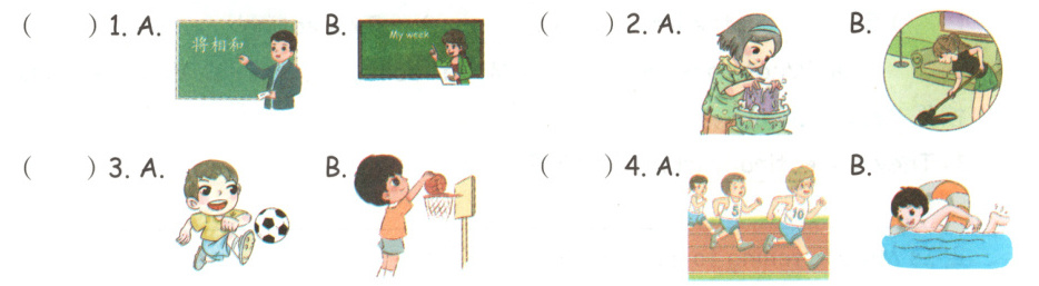 ( ) 3. A. He's doing kung fu. B. He's doing his homework.