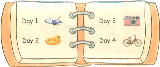 1.plane 2.went swimming 3.took lots of pictures 4.rode a bike