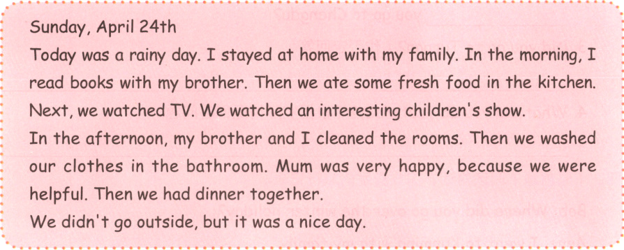 ( ) 2. We stayed at home all day.