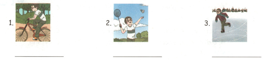 1. go cycling 2. ice - skate 3. winter 4. spring 5. play badminton