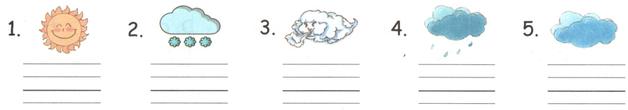 1. sunny 2. snowy 3. windy 4. rainy 5. cloudy