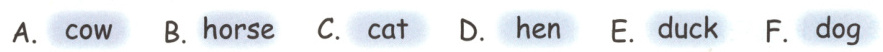 Welcome to our farm! Today you'll have lots of fun here. Look, we have so many animals. We have ten horses and twenty hens. We also have seventeen ducks. Listen, "Quack, quack!" You can take photos. You can also count the animals. What about those? They are baby dogs.