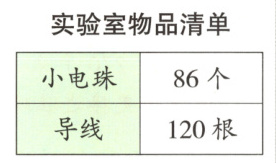 3. “让小电珠亮起来”的实验中,一组实验器材需要2个小电珠和4根导线。根据右侧清单,最多能配成多少组实验器材?