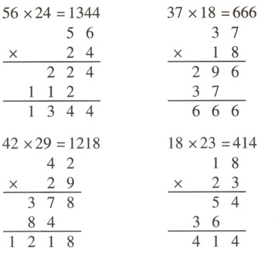 56×24 = 37×18 = 42×29 = 18×23 =
