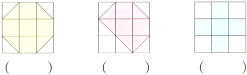②下面图形中的阴影部分,哪个面积最大?在面积最大的图形下的括号里画“√”。