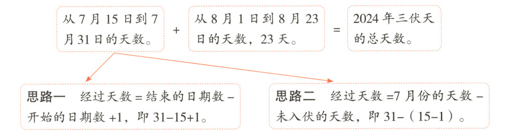 例2 阅读资料,算一算,2024年三伏天一共有多少天?
