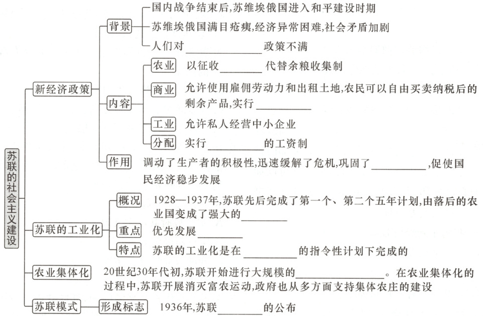 背景:国内战争结束后,苏维埃俄国进入和平建设时期;苏维埃俄国满目疮痍,经济异常困难,社会矛盾加剧;人们对______政策不满
