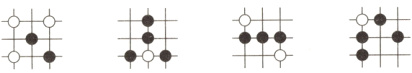 (2)新情境$·$传统文化$]$围棋起源于中国,古代称为$“$弈$”,$至今有四千多年的历史。下列由黑、白棋子摆成的图案中,是轴对称图形的有$( )$个。