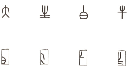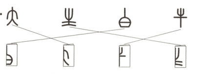 $3. [$新情境$·$传统文化$]$小篆$(zhuàn)$是我国古代的一种文字,下面第一行的小篆文字是从第二行哪张对折的纸上剪下来的$?$连一连。