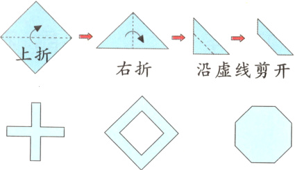 4. (名校期末真题)如图所示,把一张正方形纸片经过两次对折后沿虚线剪下,展开后的图形是哪一个?圈一圈。