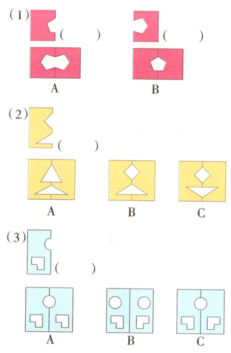$2. $把一张长方形纸对折,剪成下面各图,展开后是哪一个$?$选一选。