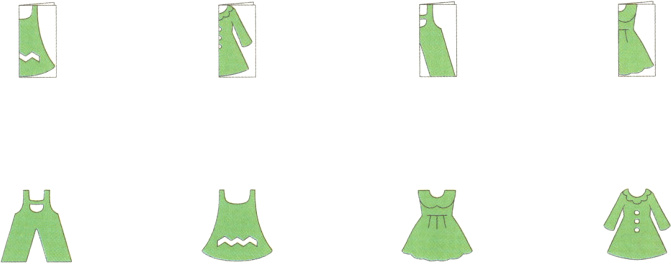 1. 下面的图案分别是从哪张对折后的纸上剪下来的?连一连。