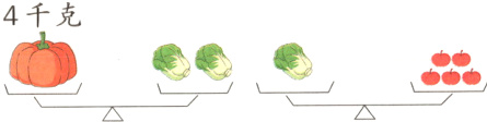7. [新情境·生活运用]古时候1斤 = 16两,成语“半斤八两”就来源于此,现在为了方便1斤 = 10两。已知1千克 = 2斤,由图可得一棵白菜重( )斤,一个苹果重( )克,即( )两。