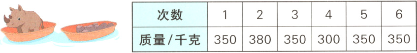 3. [教材改编]石头和犀牛分别装在两艘相同的船上,水到船体的位置相同,船上的石头分6次称完。你能用比较简单的方法求出犀牛的质量吗?