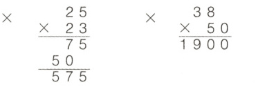 $\begin{array}{r}25\\\times23\\\hline65\\50\\\hline565\end{array}$ ( )