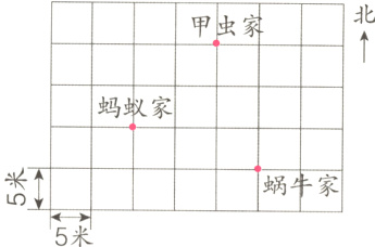@@蚂蚁沿去时的路线从甲虫家回到自己家需要走20米。它的行走路线是先向西走10米,再向南走10米。