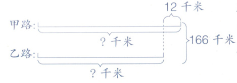$166 - 12 = 154$(千米)乙路:$154\div2 = 77$(千米)甲路:$77 + 12 = 89$(千米)