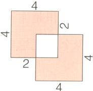 有3个正方形。4×4×2 - 2×2×2 = 24(平方厘米)