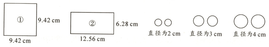 ①配直径为3cm的圆,②配直径为2cm或直径为4cm的圆都行。