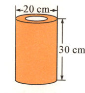 2. 乐乐和妈妈一起做了一个圆柱形灯笼(如图),灯笼上下底面的中间部分分别留出了50 cm²的口。如果他想在灯笼的侧面和上下底面未留口的部分贴上彩纸,至少需要多少彩纸?
